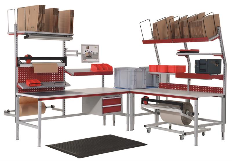 Wir sind der festen Überzeugung, dass gutes und sicheres Verpacken nicht beim Karton und der Luftpolsterfolie aufhört. Gute Arbeits- und Pack-Plätze erhöhen die Effizienz, erhalten eine gleichbleibende Quailität des Verpackungsvorgangs und steigern nicht zuletzt die Freude an der Arbeit. Eine runde Produktpalette steht bereit, um Ihren Verpackungsablauf auf eine neue Stufe zu heben: